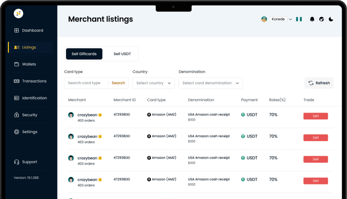 Simply sign up, go through our simple KYC, select the gift card you wish to trade, and choose your preferred merchant to whom you will sell. Follow the prompts for a quick and secure transaction.